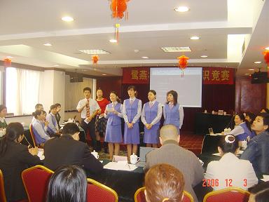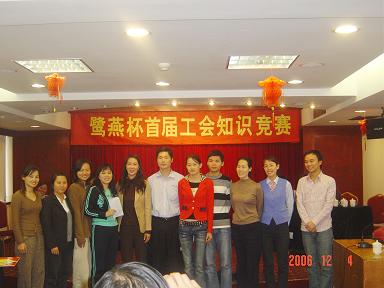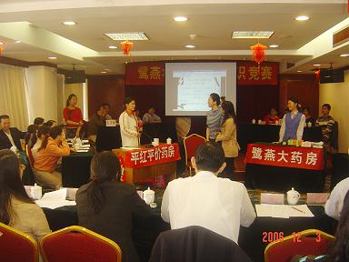 厦门鹭燕大药房有限公司于2006年12月3日在厦门庐山大酒楼隆重举行鹭燕杯首届工会知识竞赛,此次工会知识竞赛由6个工会小组各自选派4名选手参加,比赛环节包括团队介绍、啦啦队互动、演讲比赛、必答题、抢答题、猜词秀、才艺表演等,形式多样、内容丰富。比赛现场还邀请了一些供应商的代表作为嘉宾评委,为比赛进行现场点评及颁奖。